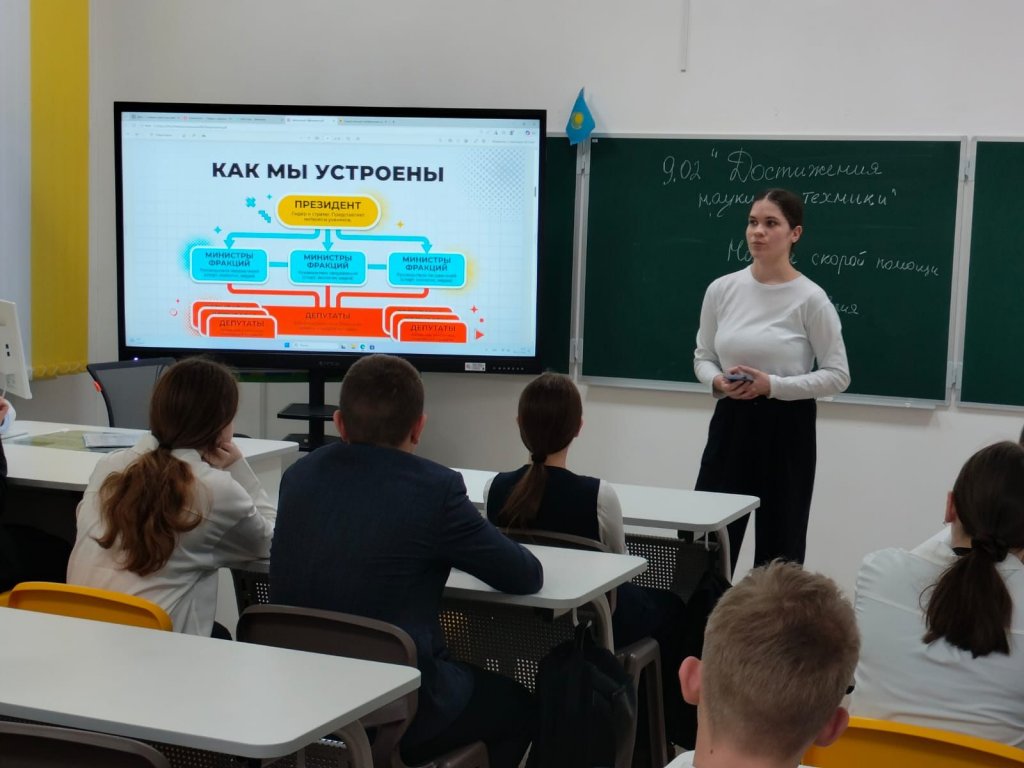 Бүгін мектептің өзін-өзі басқару ұйымының көшбасшы белсенді оқушылары Мектеп парламентінің қызықты таныстырылымын өткізді. Іс-шараның мақсаты – оқушыларды мектептегі өзін-өзі басқару жұмысының бағыттарымен таныстыру және жаңа белсенділерді тарту. Таныстырылым барысында оқушылар іс-шараларды ұйымдастыруға қалай қатысуға болатынын, мектеп өміріне ықпал ету жолдарын және өз идеяларын жүзеге асыру мүмкіндіктерін білді. Егер сен өз даусыңның естілгенін қаласаң және белсенді команда мүшесі болғың келсе — Мектеп парламенті сені күтеді!