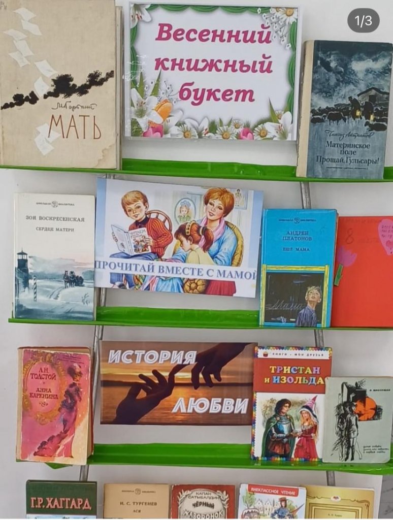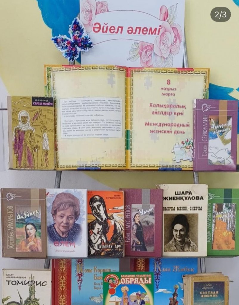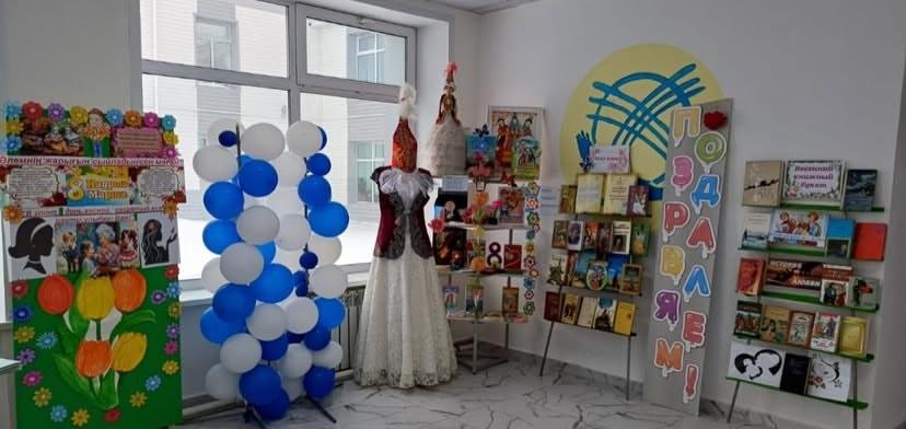 Көктемгі мереке қарсаңында мектеп кітапханасы « Әлемнің жарағын сыйладың сен маған» « атты құттықтау кітап көрмесін ұйымдастырды. Көрмеде ұсынылған кітаптарда әдебиет пен тарихтағы әйелдің өмірі, бейнесі көркемделген . Сондай-ақ, көрмеде басты кейіпкер қыздар болатын «Тек қыздарға арналған» сериясының кітаптары ұсынылған. Қыздардың қиын тағдырлары туралы осы жарқын әңгімелер бүгінде жас оқырмандардың жүрегіне әсер ететініне күмән жоқ. Көрме балаларды әйелдер күніне арналған әдеби шығармалармен таныстырып қана қоймай, олардың бойында жақындарына деген сүйіспеншілік, құрмет пен ризашылық сезімін тәрбиелеуге арналған.