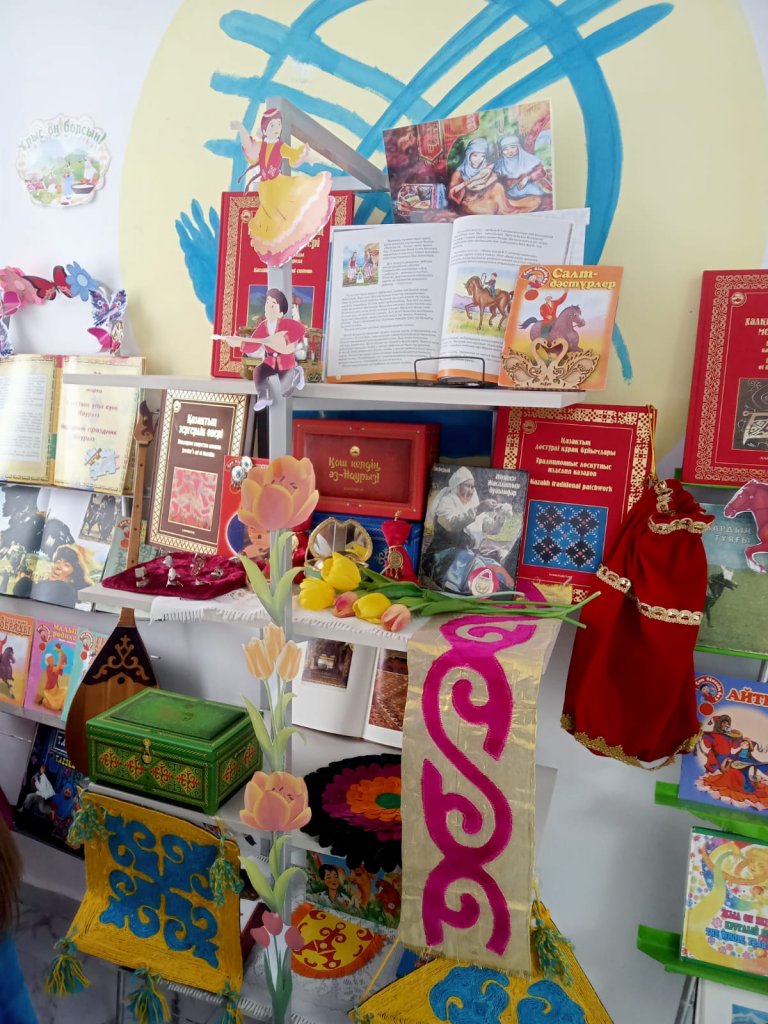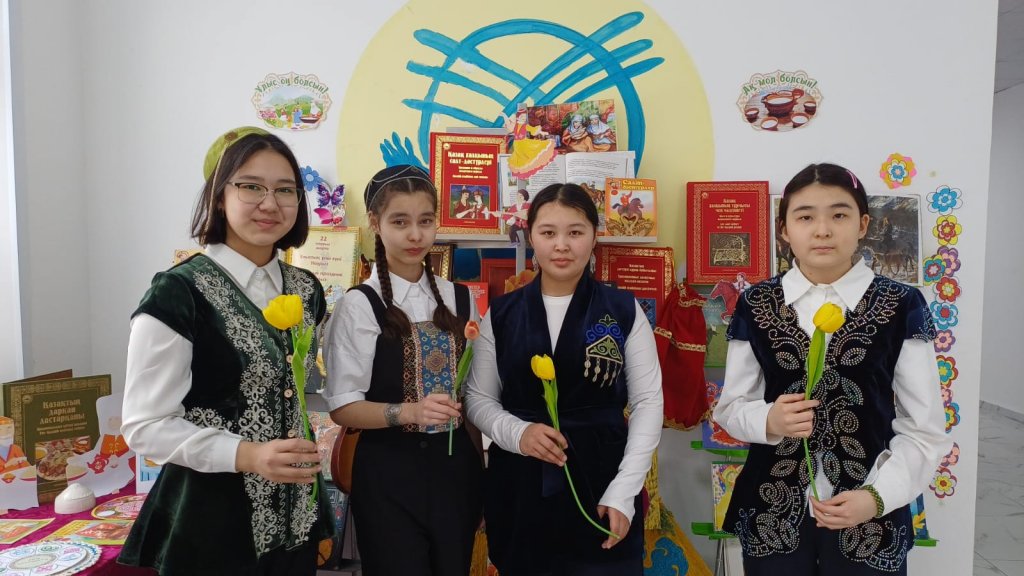 Құрметті оқырмандар! Наурыз мерекесі мен Жаңа жылдың басталуымен құттықтаймыз! Сіздің өміріңізде мерекенің символы болып табылатын жаңару болсын. Сізге бақыт, үйіңізге қуаныш тілейміз. Дастархан жыл бойы бай болсын және табыс әрқашан болсын. Бұл Шығыс Жаңа жылы болғандықтан, шығыс желдері сәттілік әкелсін, ал басталуы сәтті және тәтті болады! Наурыз мерекесіне орай кітапхана кітап-иллюстрациялық көрмені ұйымдастырды. Наурыз мерекесінің тарихымен, қазақ дәстүрлері мен салт-дәстүрлерін, ұлттық ойындар мен Қазақстан халықтарының тағамдарын насихаттайтын кітаптармен мектеп фойесінде таныса аласыздар.
