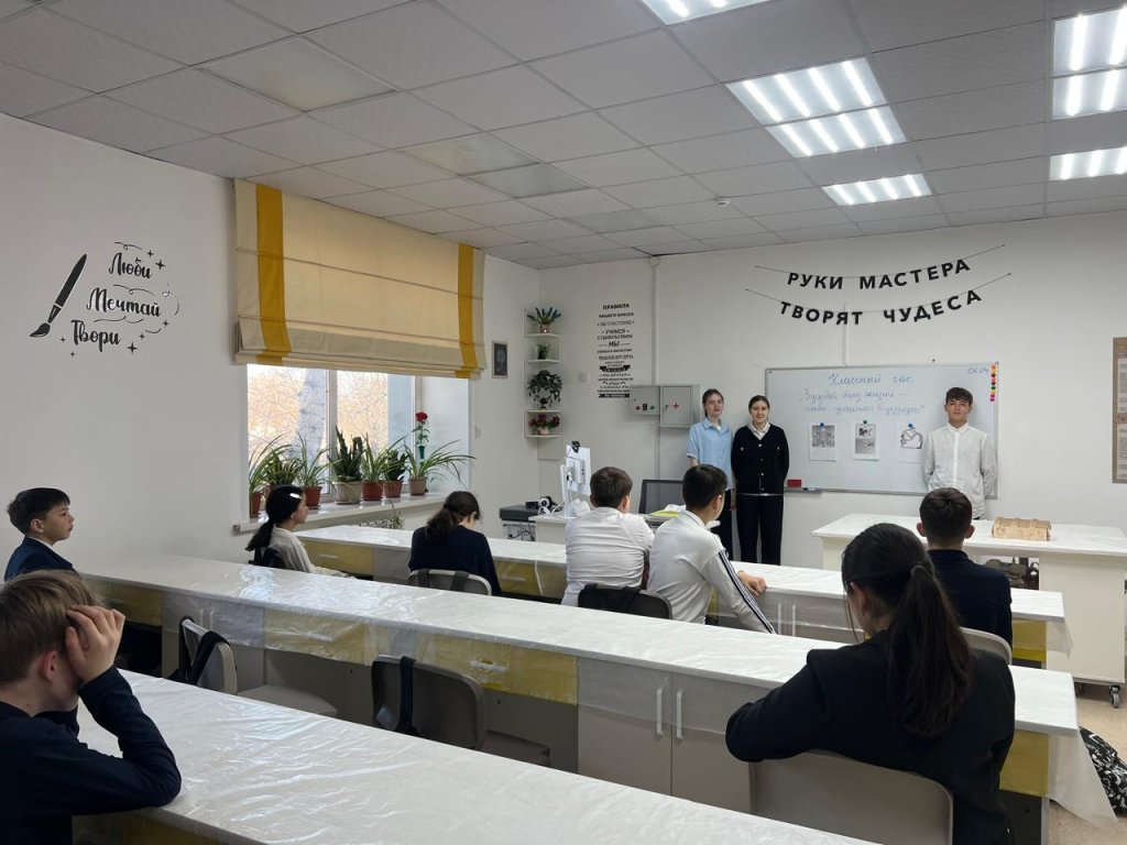 2026 жылғы 7 сәуірде 1-ден 11-сыныпқа дейін «Салауатты өмір салты» тақырыбында бірыңғай сынып сағаты өткізілді. Іс-шараның мақсаты – білім алушыларға денсаулықты сақтаудың маңыздылығын түсіндіру, дұрыс тамақтану, дене белсенділігі және күн тәртібін сақтау дағдыларын дамыту.