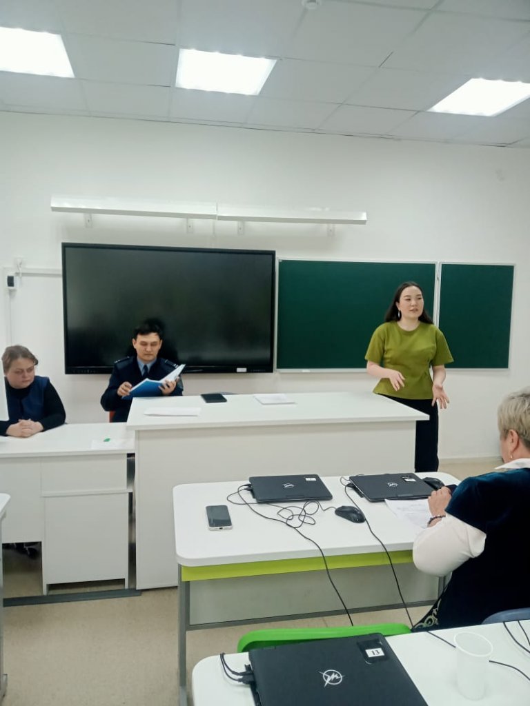 15 сәуір 2026 жылы мектепте педагогикалық ұжыммен және 10–11 сынып оқушыларымен алаяқтық тәуекелдерге байланысты құқық бұзушылықтар мен қылмыстардың алдын алу мақсатында түсіндіру жұмыстары жүргізілді. Әңгімелесу барысында білім беру саласындағы алаяқтық әрекеттерге ерекше назар аударылды. Қатысушыларға қазіргі уақытта белгісіз тұлғалардың белгілі бір ақыға жоғары оқу орындарына (магистратура, докторантура, бакалавриат) білім гранттарына «көмек» ұсыну, сондай-ақ ҰБТ мен біліктілікті арттыру тесттерінен жоғары балл алып беруге уәде ету жағдайлары жиі кездесетіні түсіндірілді. Мұндай ұсыныстардың заңсыз екені және алаяқтық сипатта болатыны атап өтілді. Оқушылар мен педагогтарға сақ болу, күмәнді хабарландырулар мен делдалдарға сенбеу, жеке мәліметтер мен ақшалай қаражатты үшінші тұлғаларға бермеу ұсынылды.