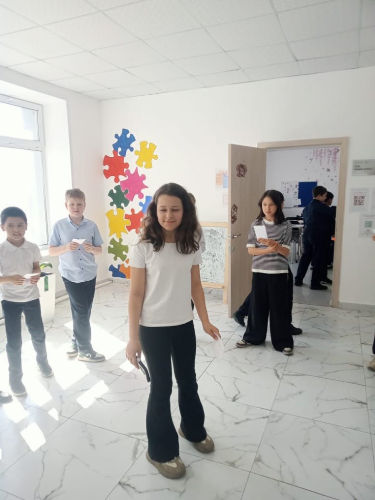 2026 жылғы 17 сәуірде мектеп психологы Якимова Н.В. 5-сынып оқушыларына арналған «Эмпатия және қабылдау» тренингін өткізді. Сабақ барысында оқушылар эмпатия ұғымымен танысып, өзара түсіністік пен айналасындағыларға құрметпен қараудың маңыздылығын талқылады, сондай-ақ қабылдау мен қарым-қатынас дағдыларын дамытуға бағытталған практикалық жаттығулар орындады.